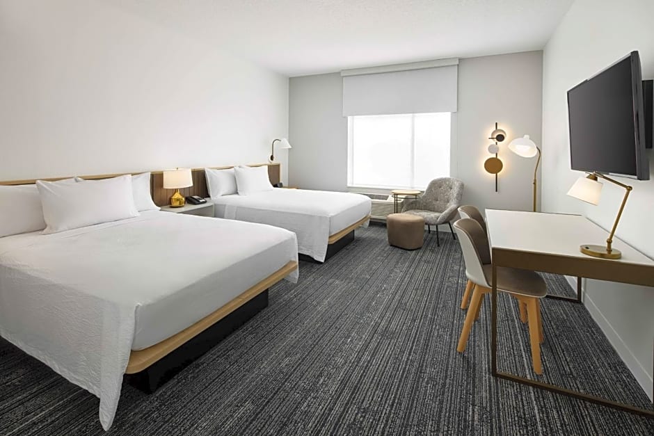 The hotel offers a variety of room types including Queen Studios, One-Bedroom Queen Suites, and King Studios. The Queen Studios and Studios with Two Queen Beds can accommodate up to 4 adults and 3 children. The One-Bedroom Queen Suites and King Studios can accommodate up to 3 adults and 2 children. None of the rooms allow smoking. The room sizes range from 248 sqft to 495 sqft.