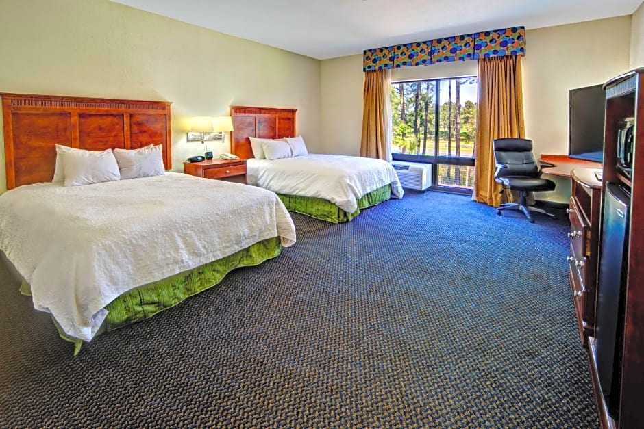 32-inch LCD HDTV, work desk, coffeemaker, free WiFi Enjoy a restful stay in this comfortable room with two clean and fresh Hampton beds® and a 32-inch LCD TV with HD channels. This room boasts a large work desk and free WiFi to help you keep on top of business. The bathroom contains plush towels and a shower with a curved shower rod, offering more space and light. Enjoy a delicious coffee from the coffeemaker included in this room.