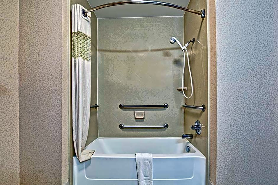 This mobility accessible, non-smoking room features one king-sized bed and an accessible bathtub. The room features a microwave, refrigerator, a HDTV, and easy to operate alarm clock/radio. The free high-speed wireless internet access will help you stay connected while on the road. If you prefer not to work at the desk, you can use the convenient lapdesk instead. You'll also enjoy the convenience of having a coffeemaker and iron/ironing board in your room. Any corresponding photo may not reflect the specific accessible room type or room feature.