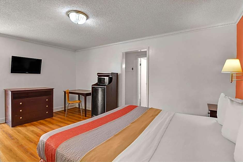 At Motel 6, guests can enjoy a range of featured amenities including a pet-friendly policy at no extra cost, an inviting outdoor swimming pool, and complimentary private parking on site. The hotel is wheelchair accessible and offers air conditioning, ensuring a relaxing stay for all visitors. Additionally, the 24-hour front desk is ready to assist with any needs during your stay.