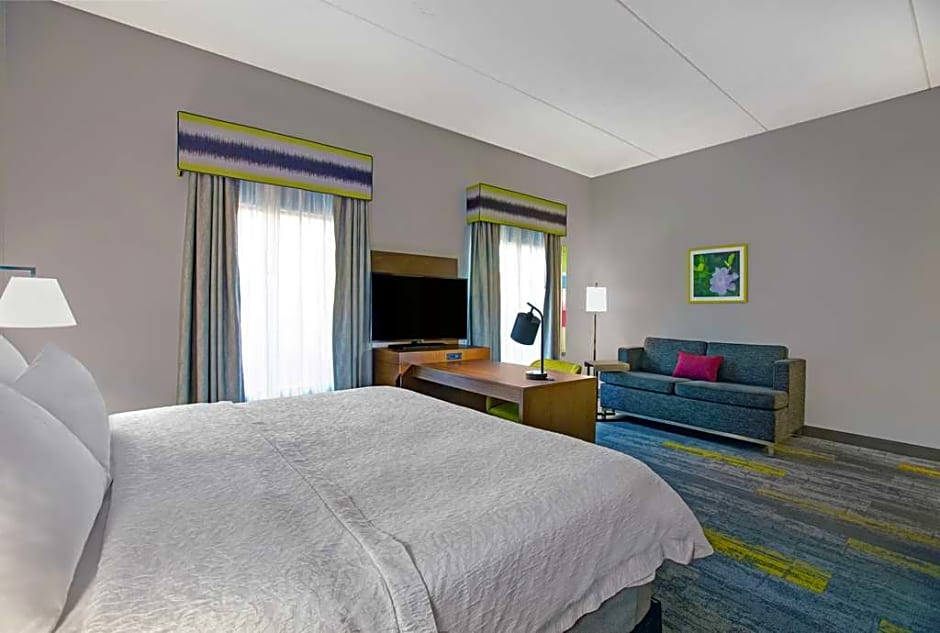 Sofa bed, work area, free WiFi, tea/coffeemaker Settle into this king studio suite and sleep deep in our clean and fresh Hampton bed®. This spacious suite includes a plush sofa bed, a TV and a tea/coffeemaker to help you feel at home. Stay productive at the spacious work desk and keep in touch with free WiFi. In the bathroom you'll enjoy fluffy towels, a WaterPik® showerhead and curved shower rod for added space and light.