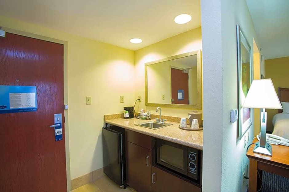 HDTV, sofa bed, work desk, coffeemaker, free WiFi access Enjoy added space and comfort in this studio suite, featuring two queen-sized beds, plus a sofa bed to sleep an extra guest. Stay entertained with a variety of movies and channels on the HDTV. Business amenities include a large desk and free WiFi access. In the bathroom, you'll enjoy fluffy towels, a WaterPik showerhead and curved shower rod that allows for more light and space. Additional amenities include a handy coffeemaker to help you feel at home.