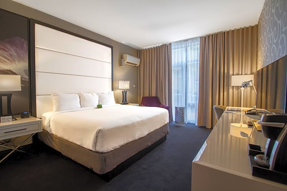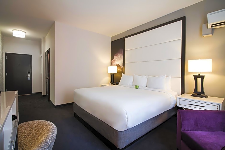 The TRYP by Wyndham Savannah hotel offers a variety of room types including King Rooms, One-Bedroom Deluxe King Rooms, One-Bedroom King Suites, and Queen Rooms with Two Queen Beds. All rooms are non-smoking and range in size from 301 to 388 square feet. The rooms accommodate between 3 and 4 adults, and have either 1 King size bed or 2 Queen size beds.