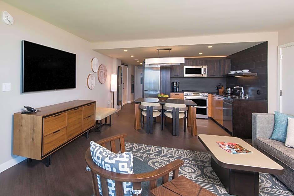 1 Bedroom Resort Vw King Suite Plus Hear Acc includes a king-size bed 150-183 width.