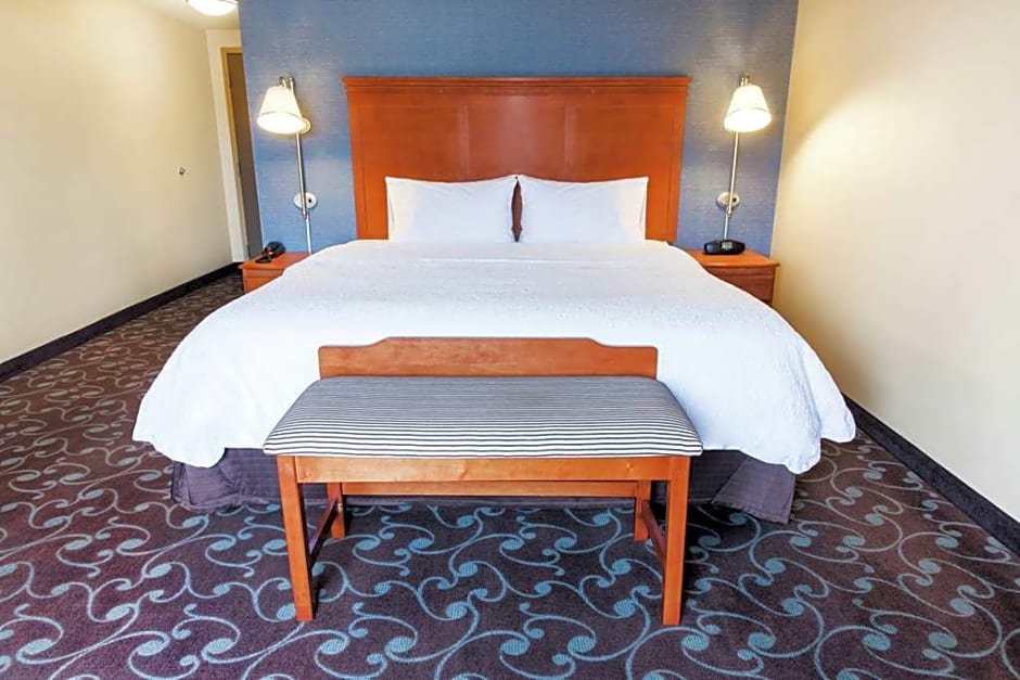 Sofa bed, free WiFi, 32-inch LCD TV, work area, tea/coffeemaker. Have a relaxing stay in this guest room that features a king-sized clean and fresh Hampton bed®. Unwind on a plush sofa bed while watching your favorite show on the 32-inch LCD TV. Enjoy a hot drink from your in-room tea/coffeemaker. This room includes a spacious work desk and free WiFi to let you catch up on work while traveling. In the bathroom you'll enjoy fluffy towels, a WaterPik® showerhead and curved shower rod for added space and light.