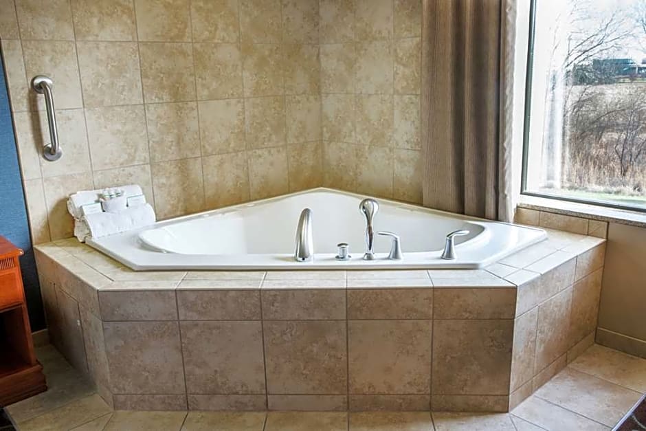 This hearing accessible, non-smoking one room studio suite features one king-sized bed and a visual alarm and notification devices for the doorbell or door knock and incoming phone calls. The room features our luxurious clean and fresh Hampton bed, comfortable sofabed, microwave, refrigerator, wet bar, a HDTV, and easy to operate alarm clock/radio. In the bath you will enjoy a WaterPik shower head and curved shower rod The free WiFi access will help you stay connected while on the road. If you prefer not to work at the desk, you can use the convenient lap desk instead. You'll also enjoy the convenience of having a coffeemaker with tea service and iron/ironing board in your room. Any corresponding photo may not reflect the specific accessible room type or room feature.
