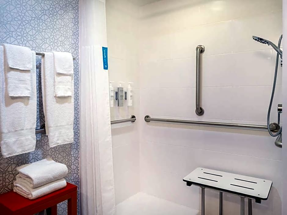 Any corresponding photo may not reflect the specific accessible room type or room feature. This mobility and hearing accessible, non-smoking room features one king-sized bed, and an accessible roll-in shower. The room also has a visual alarm and notification devices for the doorbell or door knock and incoming phone calls. The room features comfortable soft seating, microwave, refrigerator, a HDTV, and easy to operate alarm clock/radio. The free high-speed internet access will help you stay connected while on the road. If you prefer not to work at the desk, you can use the convenient lapdesk instead. You'll also enjoy the convenience of having a coffee maker with tea service and iron/ironing board in your room.