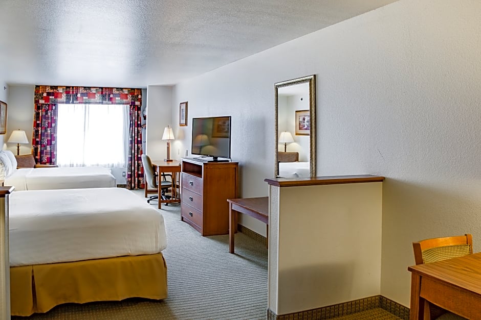 The Holiday Inn Express & Suites Jacksonville offers a variety of room options. They have King Rooms and Standard Double Rooms with a double bed, accommodating up to 2 adults and 2 children. The hotel also has Suite options, including a Two-Bed Suite, King Suite, and One-Bed Suite, with different bed configurations and accommodating larger groups of up to 6 adults and 4 children. All rooms are non-smoking and range in size from 312 sqft to 570 sqft.