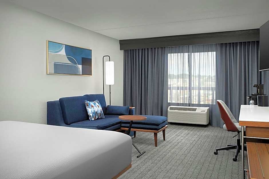 The Courtyard by Marriott Bloomington offers a variety of room types including queen rooms with two queen beds, king rooms with sofa beds, and pure wellness rooms with either king beds or two queen beds. These rooms range in size from 237 sqft to 323 sqft. Smoking is not allowed in any of the rooms. The rooms accommodate between 3 and 5 adults, and between 2 and 4 children, depending on the specific room type.