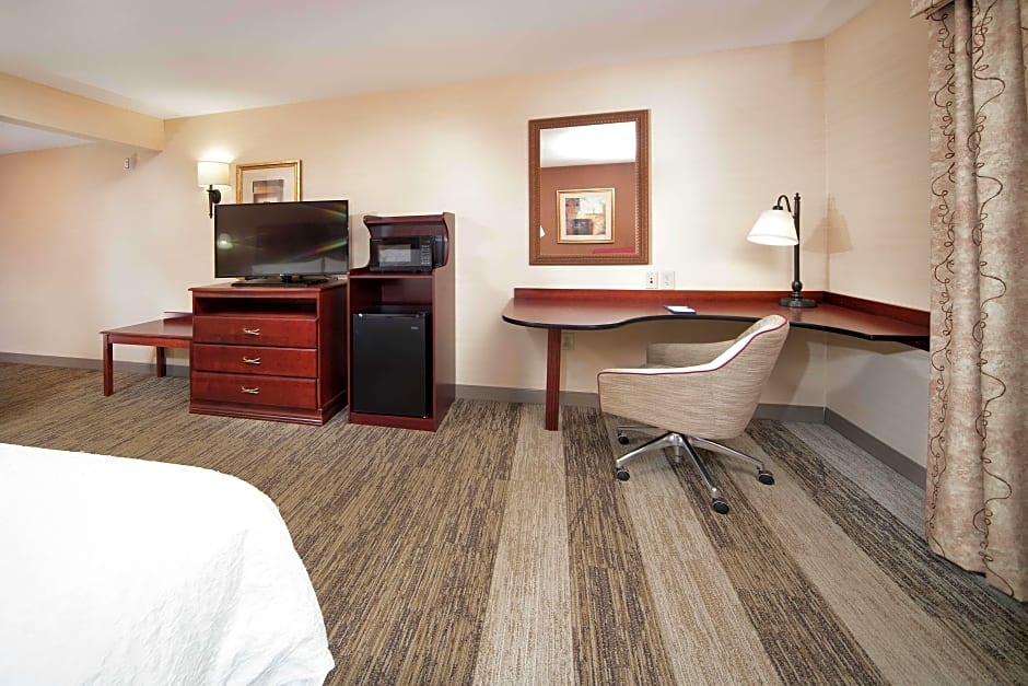This hearing accessible, non-smoking room features one king-sized bed. The room also has a visual alarm and notification devices for the doorbell or door knock and incoming phone calls. The room features comfortable soft seating, a HDTV, and easy to operate alarm clock/radio. The free high-speed internet access will help you stay connected while on the road. If you prefer not to work at the desk, you can use the convenient lapdesk instead. You'll also enjoy the convenience of having a coffeemaker with tea service and iron/ironing board in your room. Any corresponding photo may not reflect the specific accessible room type or room feature.