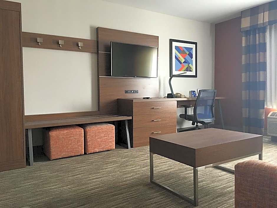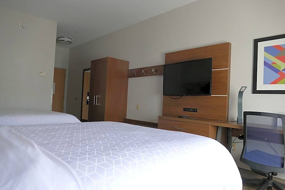 The Holiday Inn Express Greensburg offers a variety of room types including Twin, Double, Suite, TwinDouble. All rooms are non-smoking and have an average size of 323 sqft. The occupancy varies from 2 adults and 1 child to 4 adults and 3 children depending on the room type. Bed sizes range from Twin to King, with some rooms also offering a sofa bed.