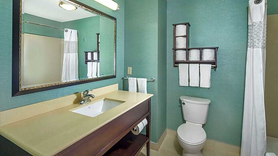 Sofa bed, work area, free WiFi, HDTV, tea/coffeemaker Settle into this spacious studio suite and relax in our clean and fresh Hampton bed®. Unwind on a plush sofa bed while watching your favorite show on the HDTV. Enjoy a delicious hot drink from your in-room tea/coffeemaker. This suite includes a spacious work desk and free WiFi to let you catch up on work while traveling. In the bathroom you'll enjoy our large dressing area with fluffy towels, a WaterPik® showerhead and curved shower rod for added space and light.