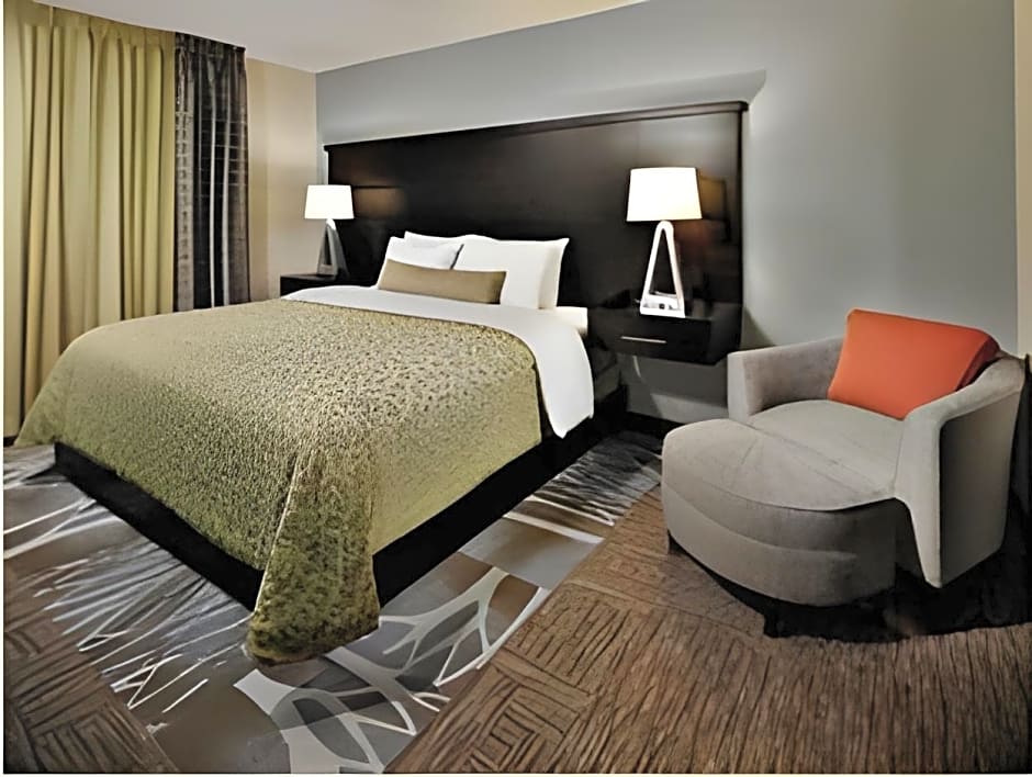 Staybridge Suites Schererville offers a variety of rooms including studio suites, one-bedroom suites, and two-bedroom suites. Occupancy ranges from single occupancy to groups of six. Rooms are non-smoking and feature either king or queen beds with some rooms including sofa beds.