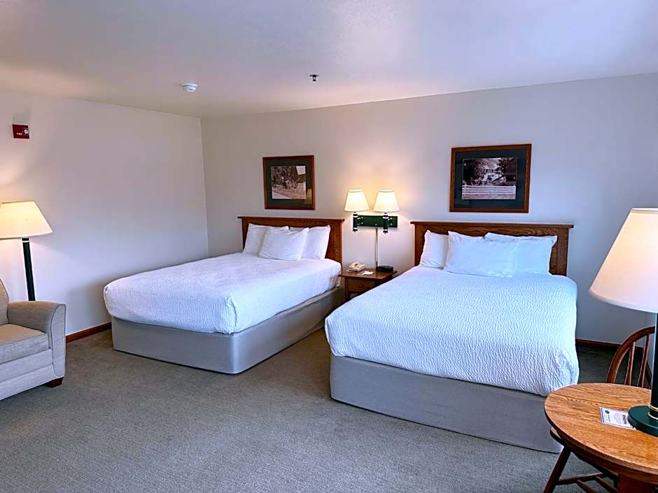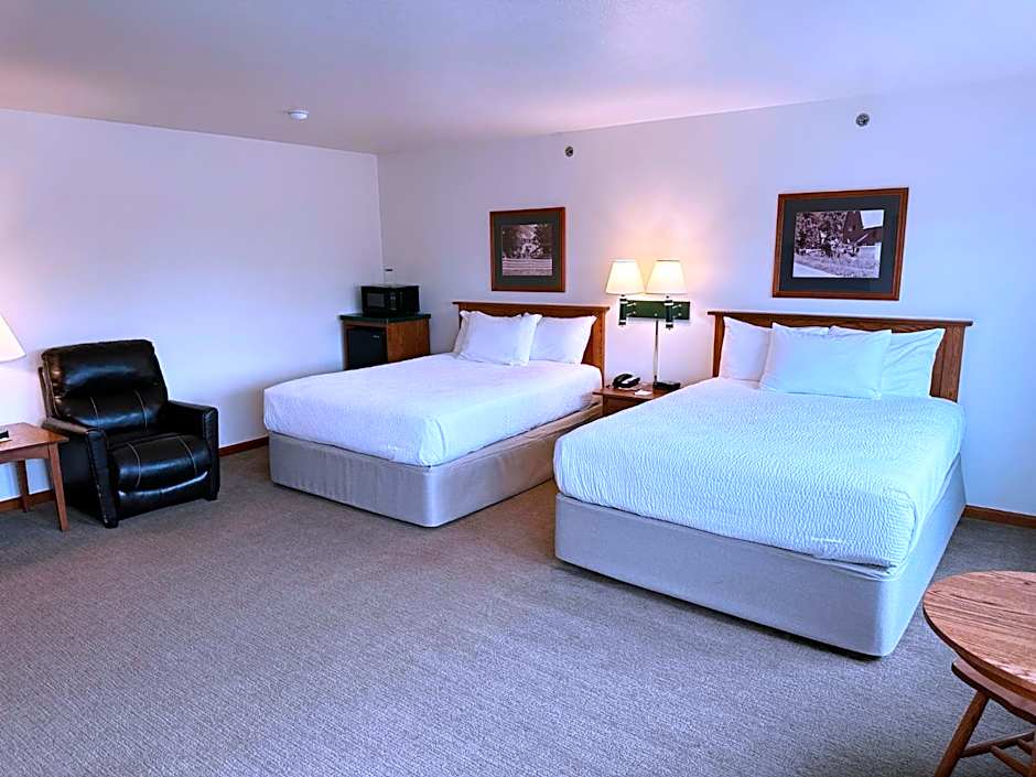 The Farmstead Inn and Conference Center offers a variety of room types including Classic Two Queen, Standard King Room, Suite One King Sofa Sleeper, Grand Two Queen Sofa Sleeper, Classic One Queen Sofa Sleeper, Suite Two King Sofa Sleeper, Classic One Queen - Handicapped, Grand King, and Grand Two Queen rooms. The rooms range in size from 248 sqft to 495 sqft. Smoking is not allowed in any of the rooms. The rooms can accommodate between 2 to 5 adults and 2 children, and bed sizes include Queen, King, and Sofa Bed.