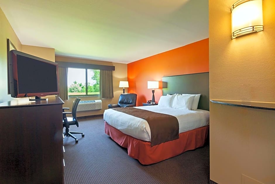 AmericInn by Wyndham Algona is a 2-star hotel in Algona, Iowa, United States, located about 1,1mi from the city center. The address is 600 Hwy. 18 West. Breakfast is offered to start the day, and practical comforts abound: free on-site parking, complimentary WiFi, air conditioning, soundproof rooms, and a 24-hour front desk. Pets are welcome with an extra charge, and free toiletries help every stay feel a little more pampered.