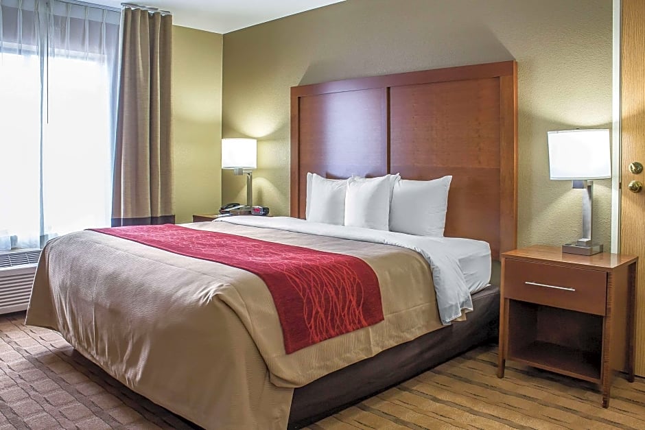 The Comfort Inn & Suites Cedar Rapids North - Collins Road offers a variety of room types, including King Suites with Sofa Beds, King Suites, King Rooms, and Queen Rooms with Two Queen Beds. All rooms are non-smoking and come with different bed sizes and room sizes. Occupancy ranges from 2 adults and 1 child to 4 adults and 3 children.