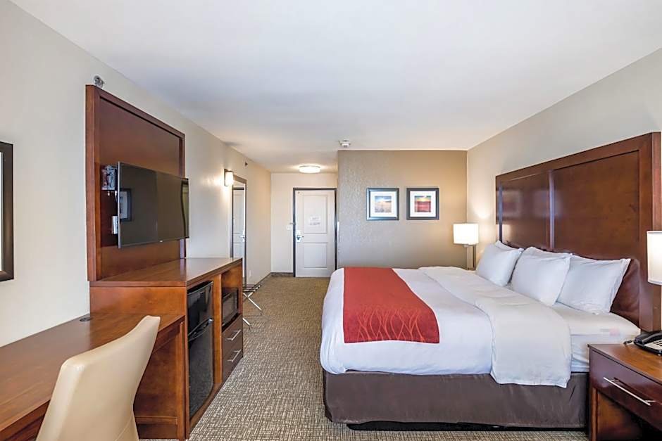 The Comfort Inn Bonner Springs Kansas City offers a variety of room types including King Rooms, Queen Rooms with Two Queen Beds, King Suites, and Accessible Queen Rooms with Two Queen Beds. All rooms are non-smoking. The King Rooms accommodate 2 adults and 1 child, while the Queen Rooms with Two Queen Beds and the Accessible Queen Rooms with Two Queen Beds can accommodate 4 adults and 3 children. The King Suite also accommodates 2 adults and 1 child. Bed sizes include King and Queen beds.
