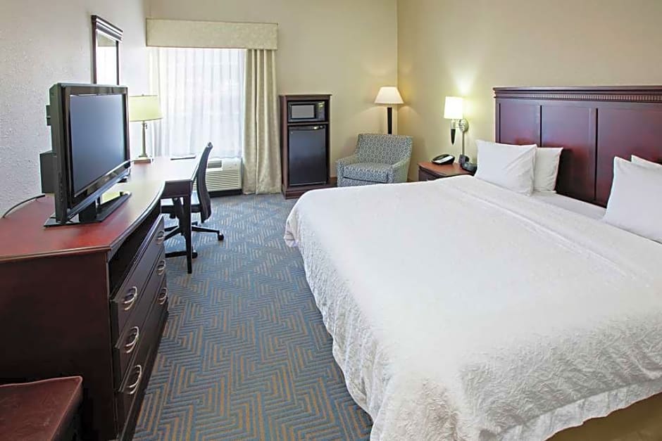 32-inch HDTV, sofa bed, work desk, coffeemaker, free WiFi access This spacious room offers one king-sized clean and fresh Hampton bed®, plus a comfortable sofa bed to sleep an extra guest. Stay entertained with a variety of movies and HD channels on the 32-inch HDTV. Business amenities include a large work desk and free WiFi access. Refresh in the bathroom with a WaterPik showerhead and fluffy towels. This room also features a handy coffeemaker to help you feel at home.