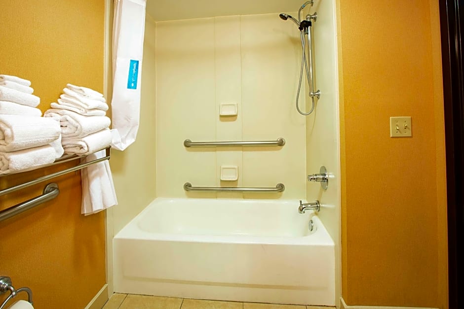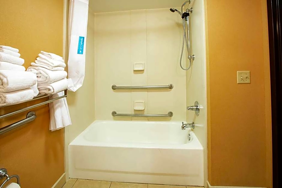 Any corresponding photo may not reflect the specific accessible room type or room feature. This mobility accessible, non-smoking room features one king-sized bed, and an accessible bath tub. The room features comfortable soft seating, microwave, refrigerator, a HDTV, and easy to operate alarm clock/radio. The free high-speed internet access will help you stay connected while on the road. If you prefer not to work at the desk, you can use the convenient lapdesk instead. You'll also enjoy the convenience of having a coffeemaker with tea service and iron/ironing board in your room.