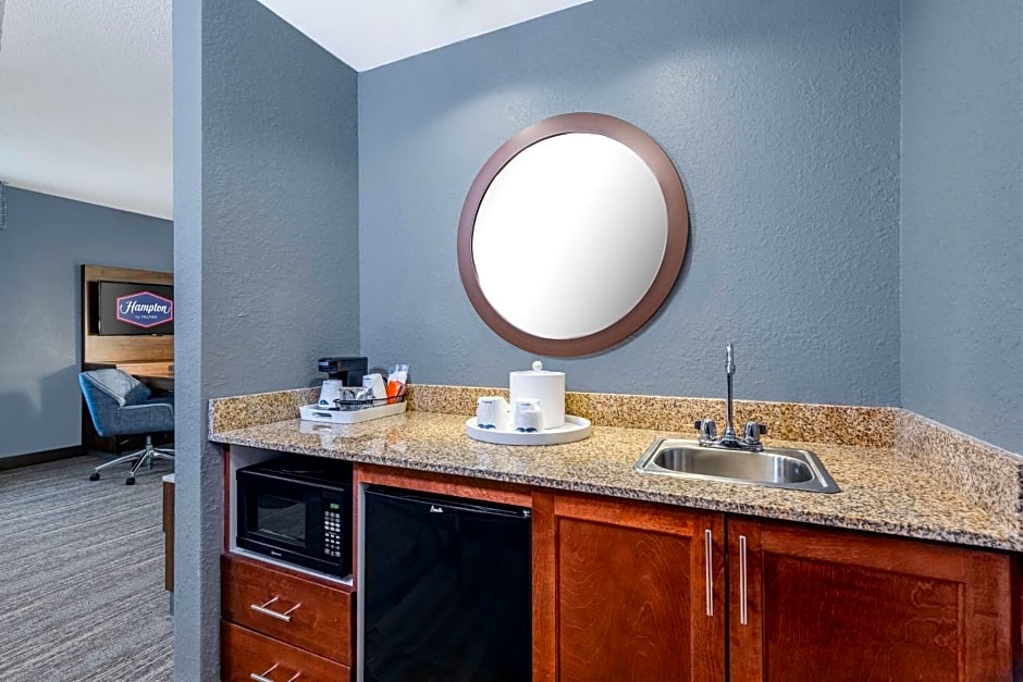 32-inch HDTV, sofa bed, work desk, coffeemaker, free WiFi access This spacious studio suite offers one king-sized clean and fresh Hampton bed®, plus a comfortable sofa bed to sleep an extra guest. Stay entertained with a variety of movies and HD channels on the 32-inch HDTV. Business amenities include a large work desk and free WiFi access. Refresh in the bathroom with a WaterPik showerhead and fluffy towels. This room also features a handy coffeemaker to help you feel at home.