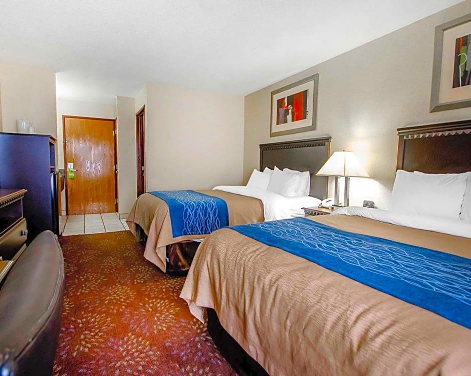 The Comfort Inn & Suites La Grange offers a variety of room types including King Suites, Queen Rooms with Two Queen Beds, and King Rooms. All rooms are non-smoking with double occupancy. The King Suite and Queen Room with Two Queen Beds can accommodate additional children. The bed sizes range from one King size bed to two Queen size beds.