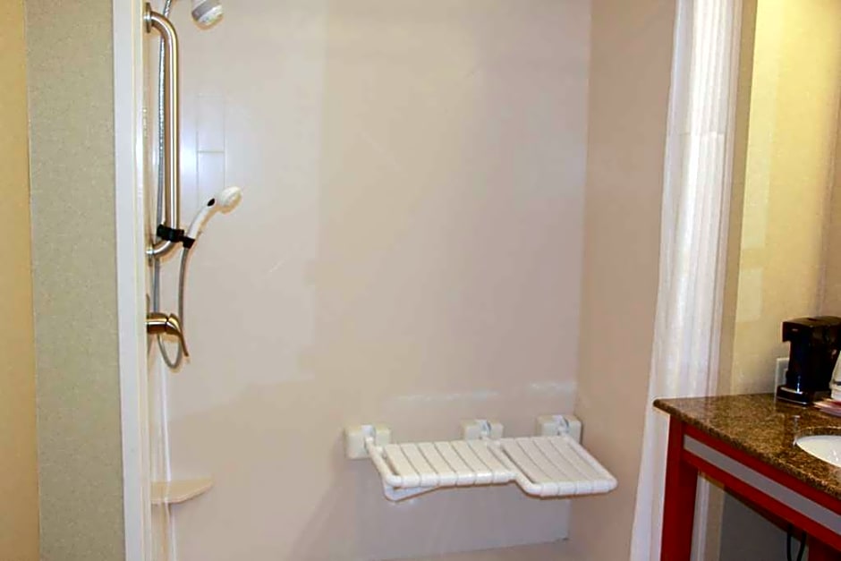 Any corresponding photo may not reflect the specific accessible room type or room feature. This mobility and hearing accessible, nonsmoking room features one king sized bed , and an accessible roll-in shower. The room also has a visual alarm and notification devices for the doorbell or door knock and incoming phone calls. The room features comfortable soft seating, microwave, refrigerator, a HDTV, and easy to operate alarm clock/radio. The free high speed internet access will help you stay connected while on the road. If you prefer not to work at the desk, you can use the convenient lapdesk instead. You'll also enjoy the convenience of having a coffee maker with tea service and iron/ironing board in your room.