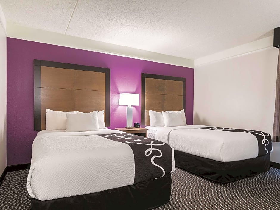 The types of rooms available at the La Quinta by Wyndham Alexandria Airport hotel include Deluxe Double Rooms with Two Double Beds, King Rooms with Mobility Access and Bath tub, Double Rooms with Two Double Beds and Roll-In Shower, Deluxe King Rooms, and Suites. These rooms have a maximum occupancy of either 5 adults and 2 children or 3 adults and 1 child. Smoking is not allowed in any of the rooms. The bed sizes vary between double beds and king-size beds.