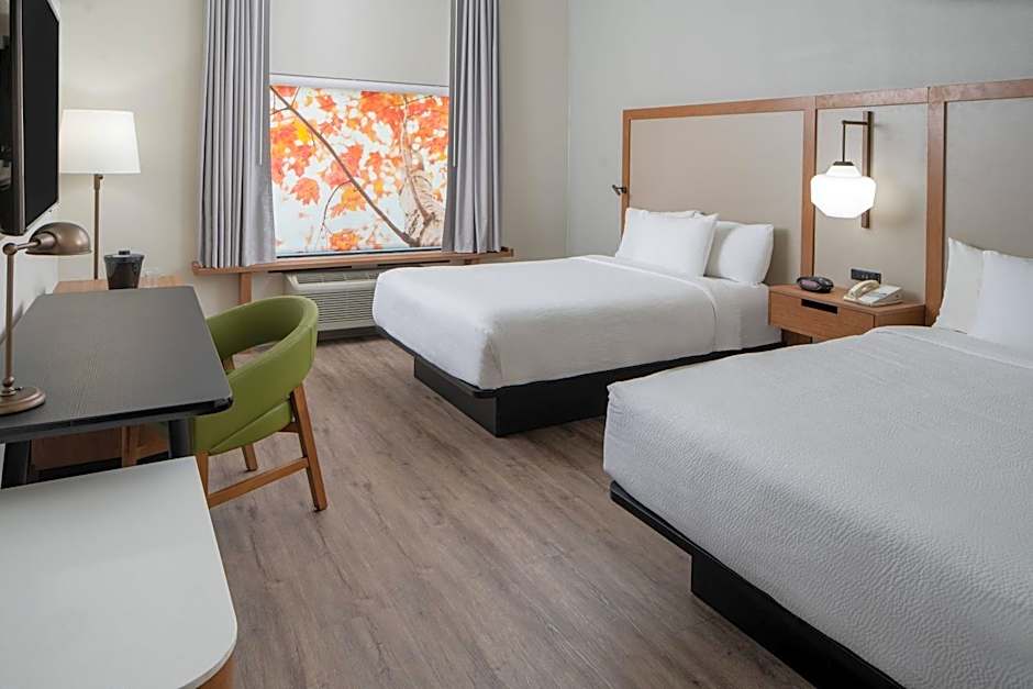 The Fairfield Inn and Suites by Marriott Lake Charles - Sulphur offers three types of rooms. The Queen Room with Two Queen Beds can accommodate up to 4 adults and 3 children, while the King Room can accommodate 2 adults and 1 child. Both of these room types have a room size of 291 sqft and do not allow smoking. The Deluxe King Room with Sofa Bed, on the other hand, can accommodate up to 4 adults and 3 children. This room type is slightly larger with a room size of 334 sqft and also does not allow smoking. All rooms have a King size bed.