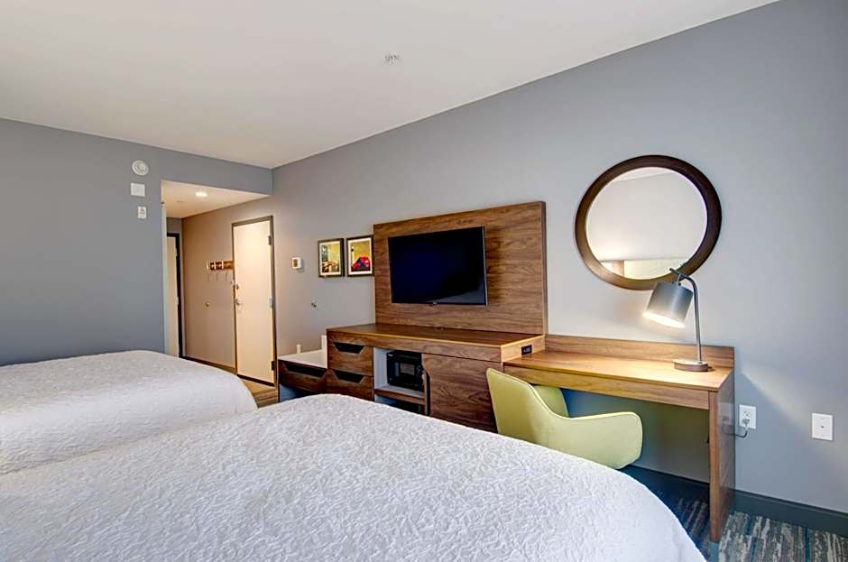 The Hampton Inn & Suites Portland West offers a variety of room types. They have Queen Rooms with Two Queen Beds, both regular and mobility accessible options, that can accommodate up to 4 adults and 3 children. The hotel also offers King Studio Suites, with options for hearing accessible, non-smoking, and mobility accessible rooms, all with a King size bed and able to accommodate 4 adults and 3 children. Additionally, they have King Rooms with a King size bed, accommodating 2 adults and 1 child. Smoking is not allowed in any of the rooms.