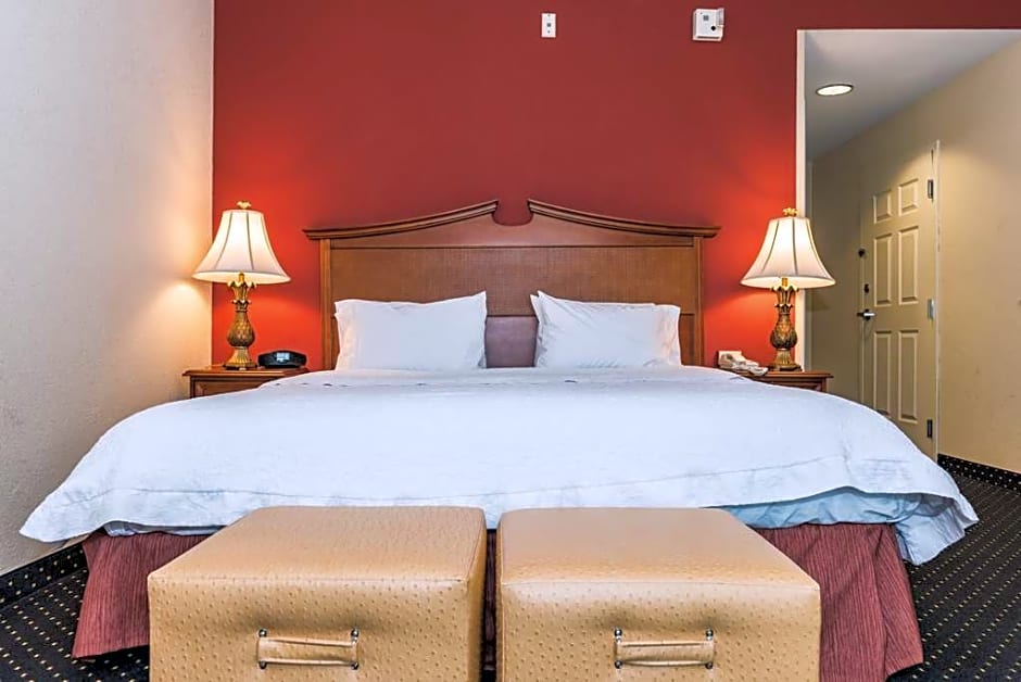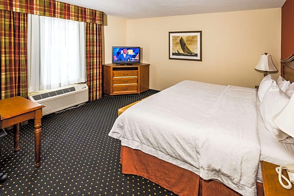 32-inch HDTV, free WiFi, work desk, coffeemaker, upholstered chair Unwind in this welcoming room with one king clean and fresh Hampton bed®. Relax on the comfortable chair watching the 32-inch LCD HDTV or stay on top of business at the desk. Keep up-to-date with free WiFi. This room also has a coffeemaker. The bathroom includes a shower with a curved rod that allows for more space and light.