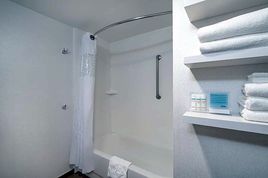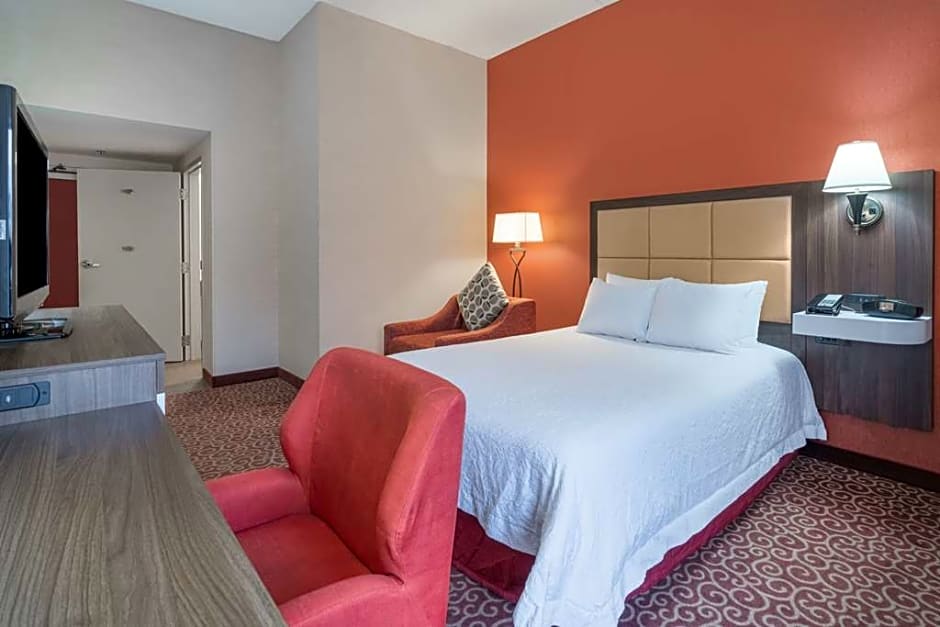 42-inch HDTV, whirlpool, free WiFi, work desk, coffeemaker, easy chair with ottoman Unwind in this welcoming deluxe room with one king clean and fresh Hampton bed®. Relax on the easy chair watching the 42-inch LCD HDTV or stay on top of business at the desk. Keep up-to-date with free WiFi. This room also includes a coffeemaker. The bathroom includes a shower with a curved rod, that allows for more space and light, and a relaxing whirlpool tub.