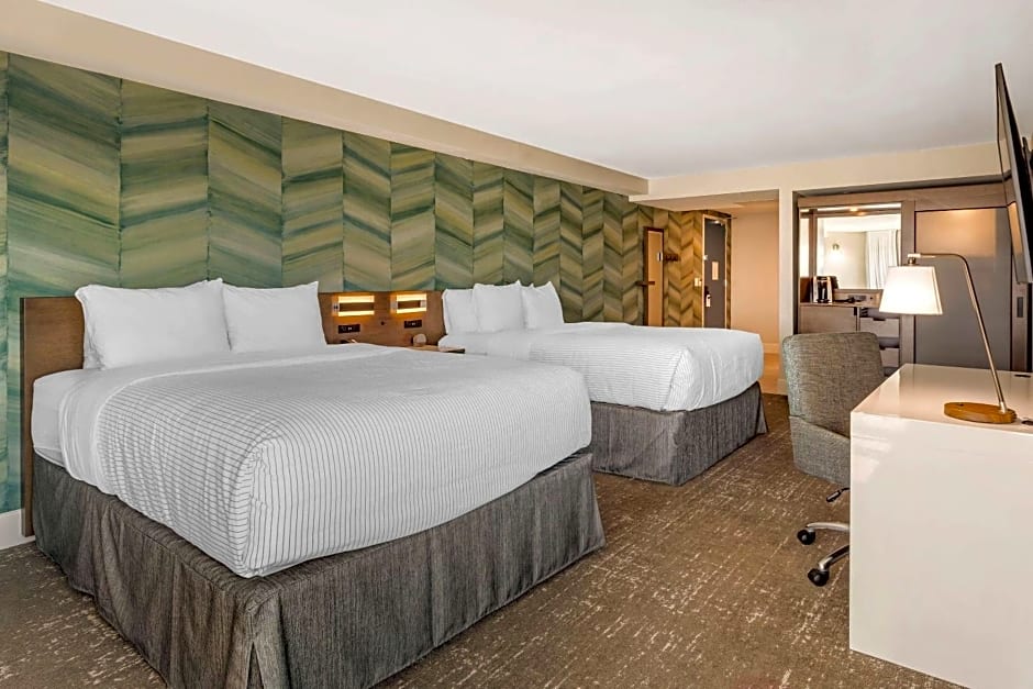 The Cambria Hotel Ocean City - Bayfront offers a variety of room types including King Rooms with Sofa Bed, Queen Rooms with Two Queen Beds and Sofa Bed, and Deluxe Queen Rooms with Two Queen Beds and Sofa Bed. All rooms are non-smoking and range in size from 301 sqft. All King Rooms accommodate 2 adults and 1 child, while Queen Rooms and Deluxe Queen Rooms accommodate 6 adults and 4 children. Accessible rooms are available.