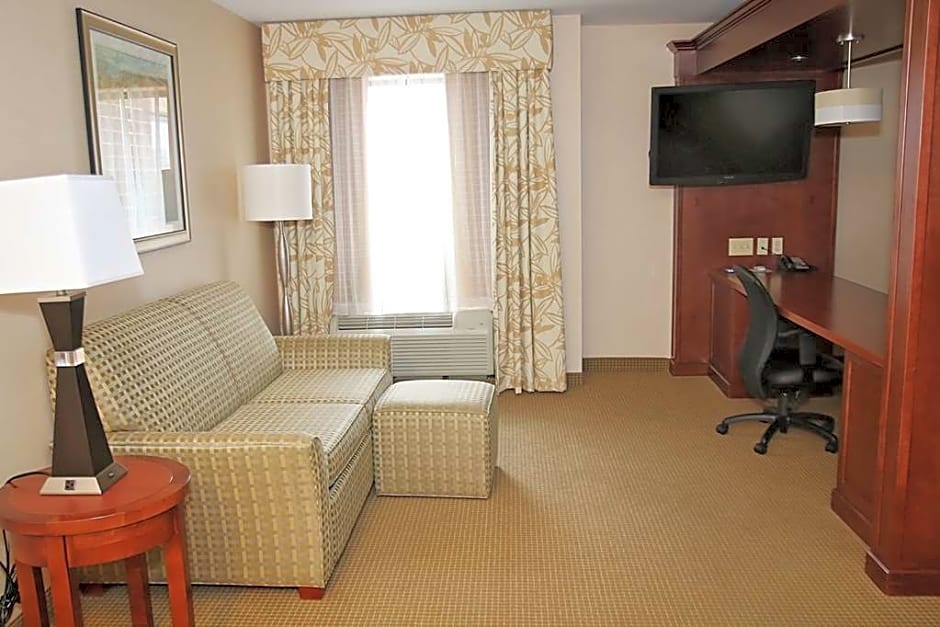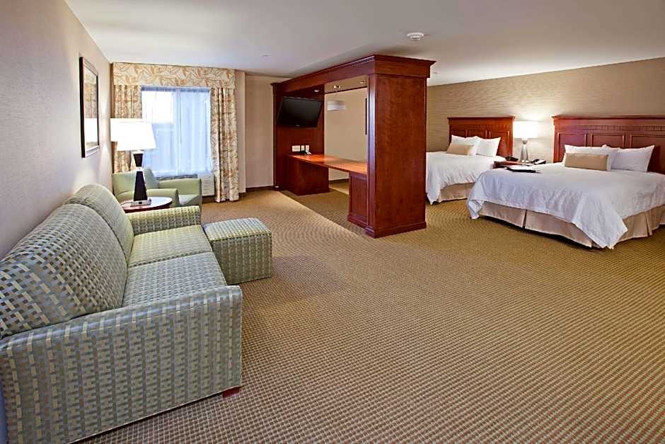 42-inch LCD HDTV, work desk, sofa bed, coffeemaker, free WiFi Relax in this warm studio suite featuring two clean and fresh Hampton beds®. Enjoy a movie on the 42-inch LCD TV with HD channels and sleep additional guests on the handy sofa bed. This suite offers a convenient work space with a desk and free WiFi. Refresh in the bathroom which features fluffy towels, ample dressing space and a shower with a curved shower rod for added comfort when showering. Enjoy a delicious coffee from the coffee/tea maker included in this studio.