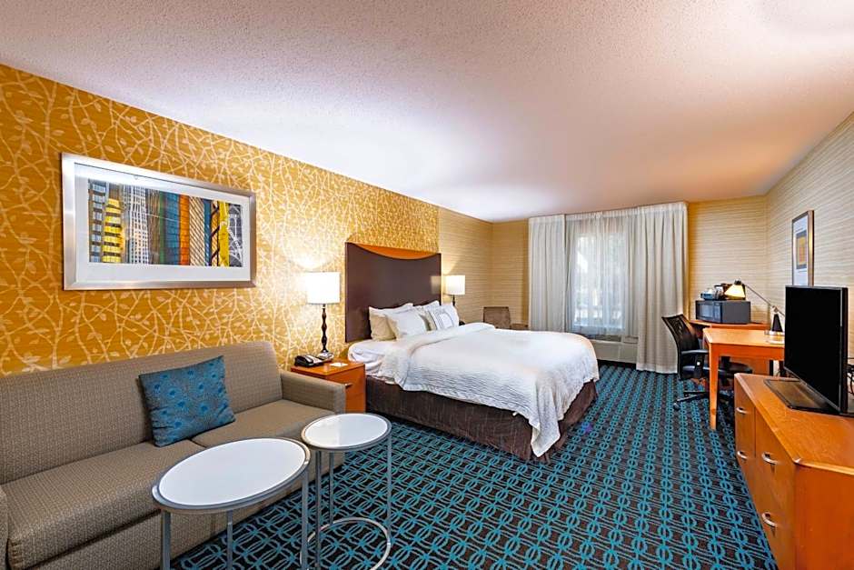 The Fairfield Inn Battle Creek offers a Larger King Room with Sofa Bed, which has a size of 377 sqft and can accommodate up to 4 adults and 3 children. This room type does not allow smoking and includes 1 King size bed and 1 Sofa Bed. Additionally, they have a King Room option, with a size of 291 sqft, accommodating 2 adults and 1 child, and also does not allow smoking. This room type includes 1 King size bed and 1 Sofa Bed.