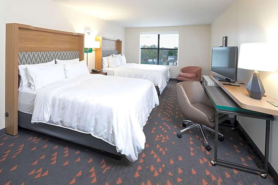 The Holiday Inn Hotel & Suites - Mount Pleasant offers a variety of rooms including Queen Rooms with two queen beds, Queen Suites with two queen beds, Leisure King Rooms, King Rooms, King Suites, and Standard Rooms. Smoking is not allowed in any of the rooms. Room sizes are 301 square feet. The rooms can accommodate different numbers of adults and children, with options for 2 adults and 1 child, 4 adults and 3 children, or 6 adults and 4 children. The beds in the rooms range from queen size to double and king size.