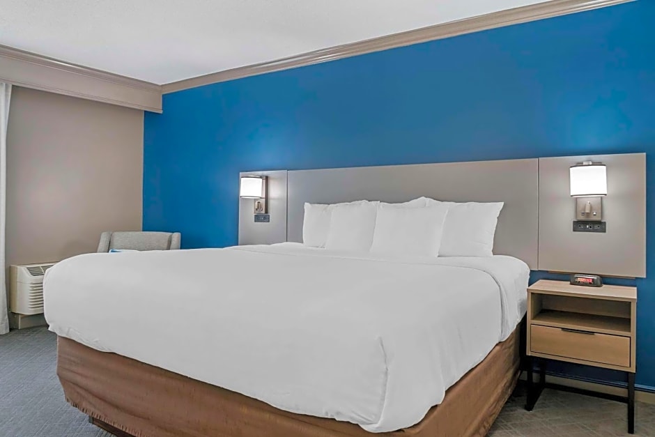 The Comfort Inn Plainwell offers a variety of room types including Queen Rooms with Two Queen Beds, King Rooms, and Deluxe King Rooms with a Sofa Bed. All rooms are non-smoking and have different bed sizes depending on the room type. The Queen Rooms with Two Queen Beds can accommodate up to 4 adults and 3 children, while the other rooms accommodate up to 2 adults and 1 child. The accessible room is equipped with a Queen size bed.