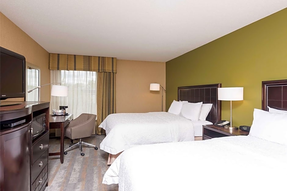 The types of rooms available at Hampton Inn Port Huron include Queen Rooms with Two Queen Beds (one of which is hearing accessible), King Rooms, and King Rooms with disability access and a bathtub. Smoking is not allowed in any of the rooms. The Queen Rooms with Two Queen Beds accommodate up to 4 adults and 3 children, while the King Rooms accommodate up to 3 adults and 2 children. All rooms have their own respective bed sizes.