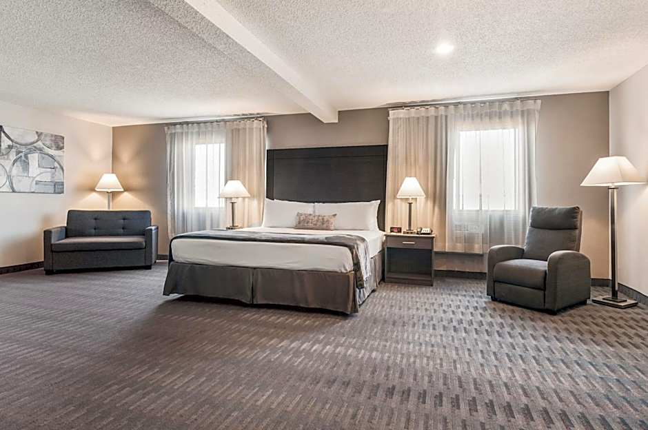 The American Inn & Suites Metro Airport offers a variety of room options including King Rooms, Double Rooms with Two Double Beds, Queen Rooms, Queen Rooms with Disability Access, and King Suites. All rooms are non-smoking and have a room size of 205 sqft. The King Room, Queen Room, and King Suite all accommodate 2 adults and 1 child, while the Double Room with Two Double Beds accommodates 4 adults and 1 child. The King Room and King Suite have a King-sized bed, the Double Room has 2 Double beds, and the Queen Room has a Queen-sized bed.