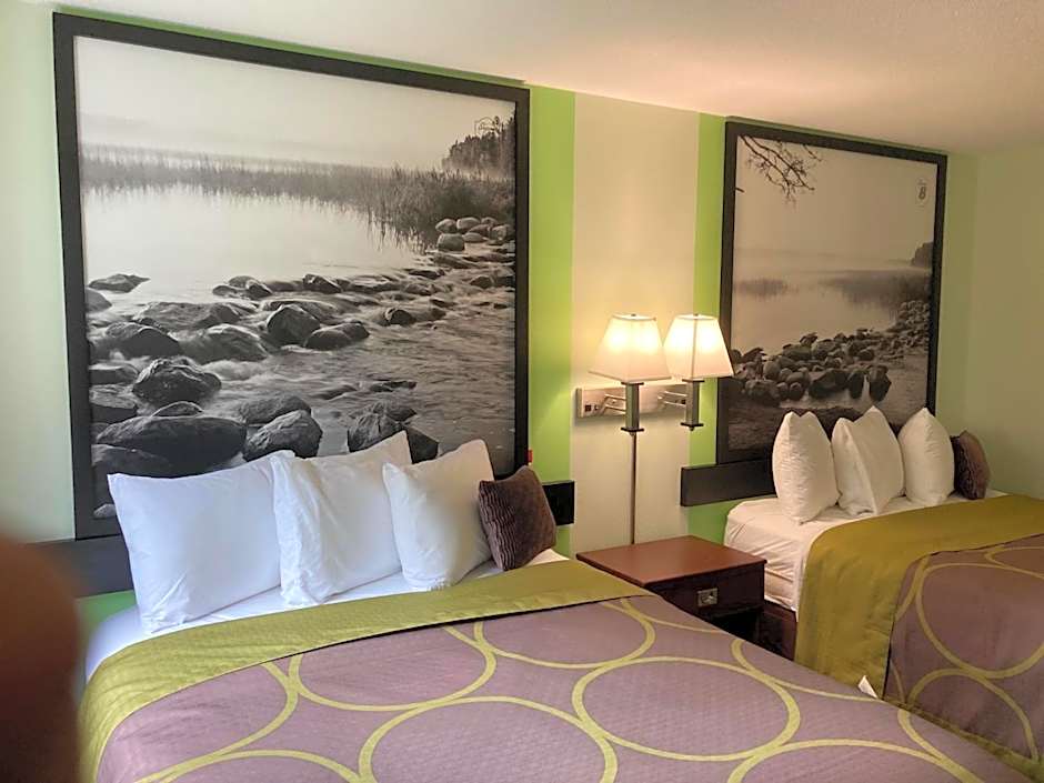 The Super 8 by Wyndham Chisago City offers several types of rooms. These include Queen Room with Two Queen Beds, King Suite, Queen Room - Mobility Access, King Room - Mobility Access, King Room, and Queen Room with Two Queen Beds and Partial Lake View. All rooms are non-smoking and have different room sizes. The rooms accommodate different numbers of adults and children and feature either queen-size beds or king-size beds. All rooms in this summary have non-smoking policies.
