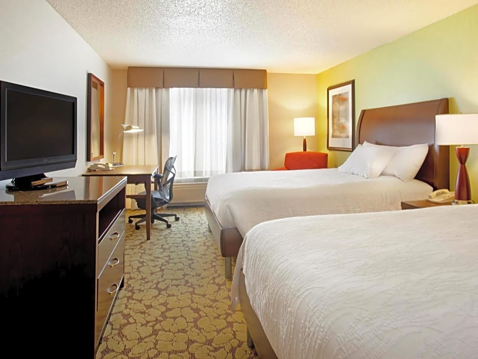 This oversized mobility accessible room features a whirlpool tub, sitting area, refrigerator, microwave, desk, ergonomic chair, HDTV, WiFi. The room also has features a visual alarm, and notification devices for the doorbell or door knock and incoming telephone calls. Make yourself at home in this room with two queen-sized Serta® Perfect Sleeper beds. Catch up with work at the large desk with ergonomic chair. Relax in the sitting area with ottoman and watch premium channels on the 32 inch HDTV. Stay connected with complimentary WiFi. This room features a microwave, Keurig® coffeemaker and a mini-refrigerator, perfect for storing any snacks you might need. Special touches include complimentary remote printing. Sleeps 4.Any corresponding photo may not reflect the specific accessible room type or room feature