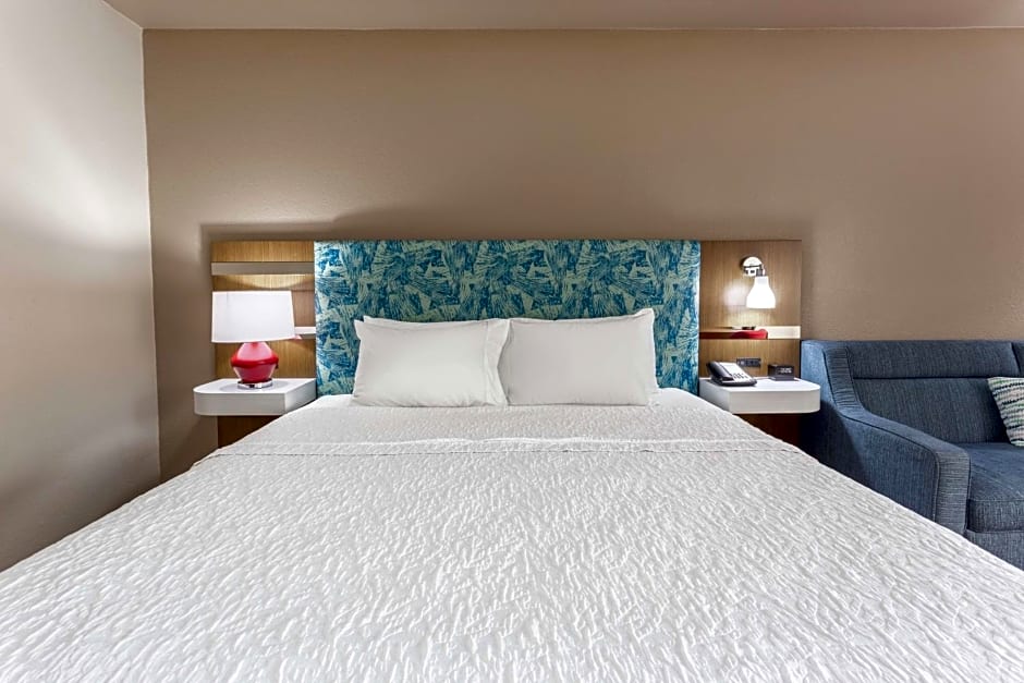 Living area, sofa bed, 32-inch LCD TV, work area, free WiFi Settle into this two-room king suite and relax in the bedroom that features our clean and fresh Hampton bed®. The living area contains a plush sofa bed, an easy chair with ottoman and a 32-inch LCD TV. A tea/coffeemaker is also included to help you feel at home. Stay productive at the spacious work desk and keep in touch with free WiFi. In the bathroom you'll enjoy fluffy towels, a WaterPik® showerhead and curved shower rod for added space and light. Please call the hotel for more details.