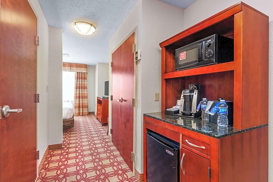 Work space, 32-inch LCD TV, microwave, refrigerator, complimentary internet access This comfortable suite features a king-sized bed complete with the Garden Sleep System adjustable mattress, a 32-inch LCD HDTV, an alarm clock radio, and a large work desk with an ergonomic chair. You'll also enjoy the convenience of complimentary wired or wireless internet access and amenities such as a microwave, a refrigerator and a Keurig® coffeemaker. In the bathroom you'll enjoy plush towels, deluxe toiletries, a WaterPik showerhead, and a curved shower rod that allows more light and space in the shower.