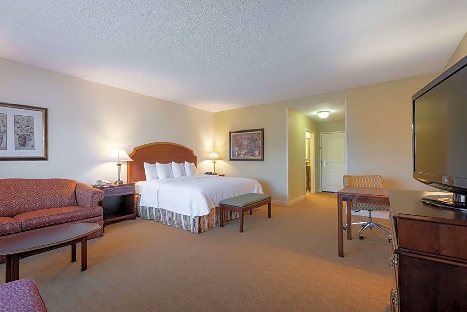 This spacious non-smoking studio suite contains a luxurious king-sized bed, 42-inch LCD HDTV, easy to operate alarm clock/radio, a comfortable desk and workspace, and a plush sofa bed. The high-speed internet access will help you stay connected while on the road. If you prefer not to work at the desk, you can use the convenient lap desk instead. You'll also enjoy the convenience of having a coffeemaker and iron/ironing board in your room. In the bathroom you'll enjoy fluffy towels, a WaterPik showerhead and curved shower rod that allows more light and space in the shower.