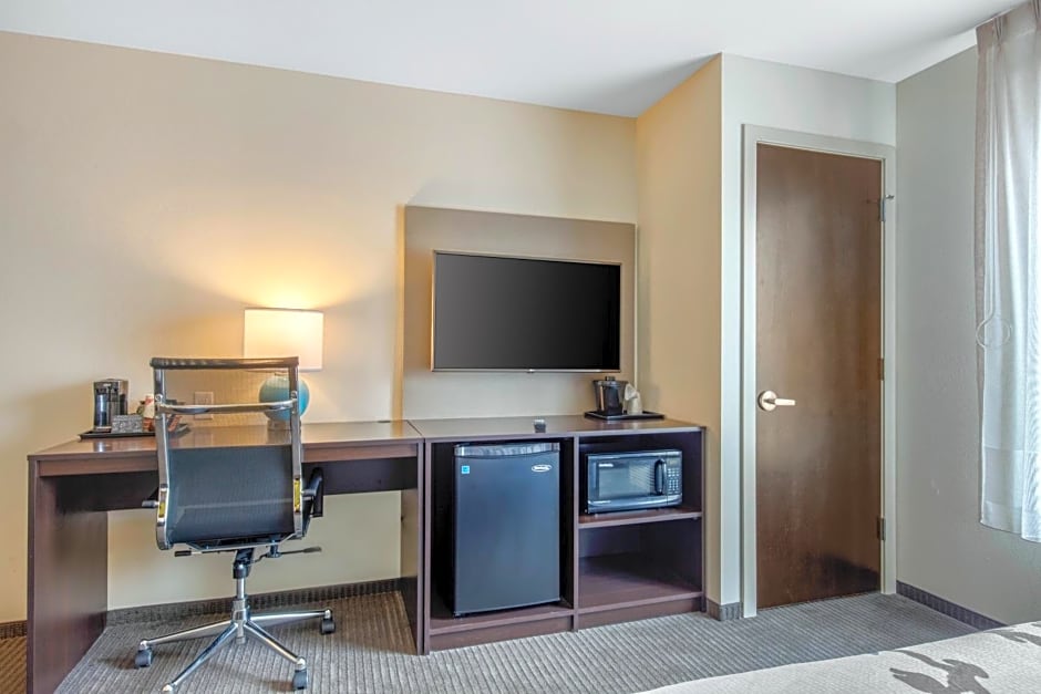 The Comfort Inn St Louis - Airport offers a variety of room types. These include King Rooms, Queen Rooms with Two Queen Beds, and accessible rooms with various amenities such as hearing and visual accessibility, accessible tubs, and non-smoking options. All rooms have a room size of 205 sqft and can accommodate varying numbers of adults and children, with most rooms accommodating 2 adults and 1 child, and some rooms accommodating up to 4 adults and 3 children.
