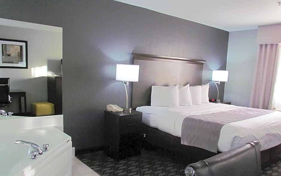 The Oak Hill Inn & Suites offers a variety of room options. There are Executive Suites, King Rooms, Queen Rooms with Two Queen Beds, and King Rooms with a Spa Bath. All rooms are non-smoking and have a room size of 312 sqft. The rooms can accommodate either 2 or 4 adults and feature either a King or Queen size bed.