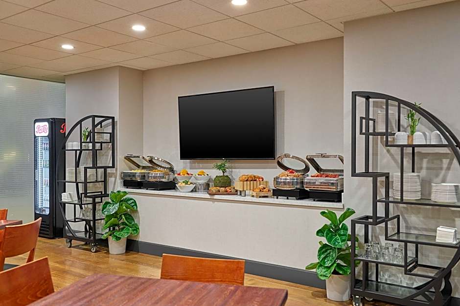 In addition to the free outdoor pool, guests can also indulge in delicious meals and refreshing drinks at the on-site restaurant and bar, One East Urban Bar + Kitchen. Serving up delectable American cuisine, this dining establishment offers a cozy and inviting atmosphere for guests to enjoy an exquisite culinary experience without having to leave the comfort of the hotel.
