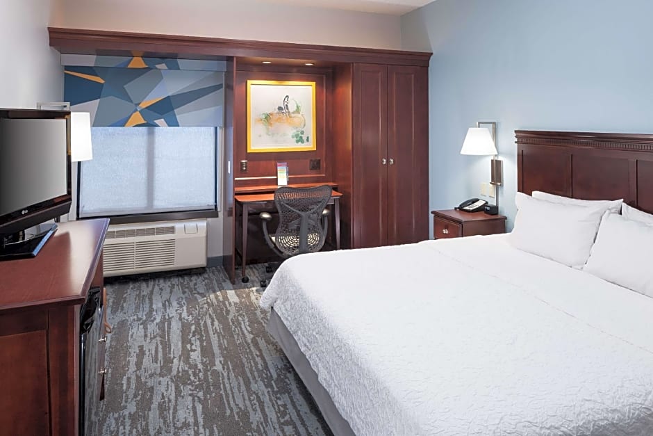 Sofa bed, 32-inch LCD TV, refrigerator, work desk, coffeemaker, free WiFi access Enjoy a restful stay in this comfortable room with a king-sized clean and fresh Hampton bed®, a sofa bed and a 32-inch TV with HD channels. This room also features a large work desk, a coffeemaker and free WiFi access to allow you to stay connected when on the road. The bathroom contains plush towels and a shower featuring a curved shower rod for added space and light.