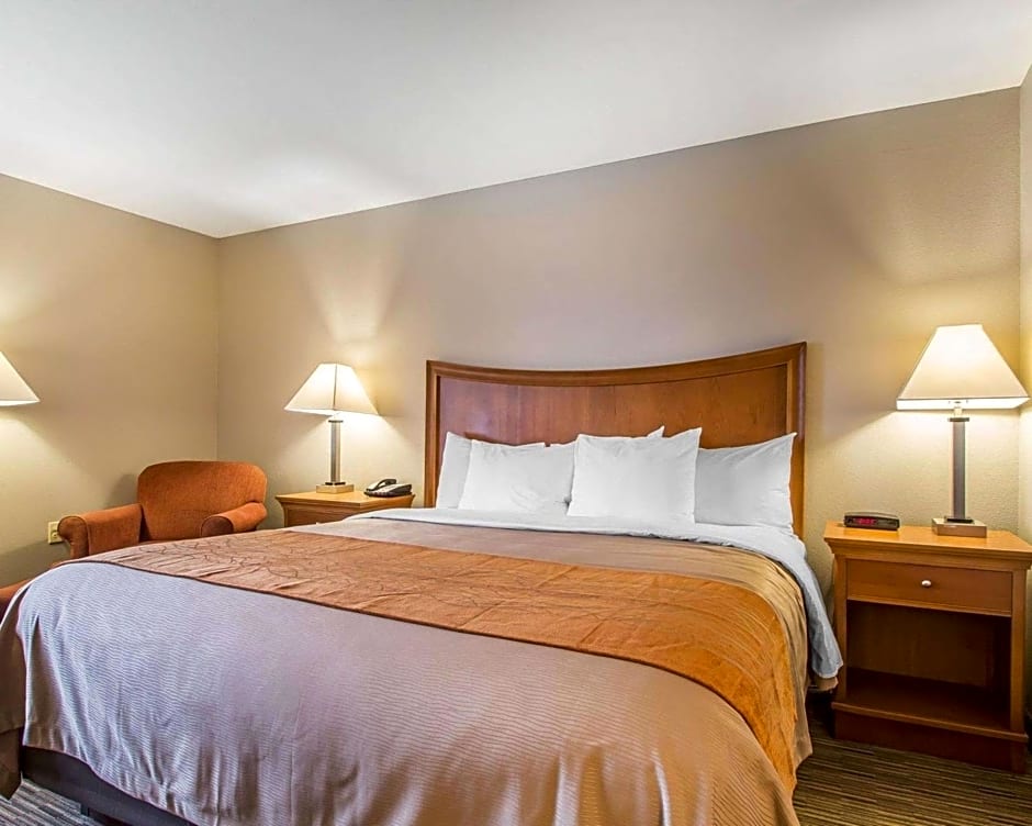 The Comfort Inn South - Springfield offers a variety of room types including: King Rooms with Roll-In Showers, King Rooms, Double Rooms with Two Double Beds, Suites with Two Queen Beds, and Standard King Rooms. Smoking is not allowed in any of the rooms. The rooms accommodate between 2 and 6 adults, with bed sizes including king and queen beds.