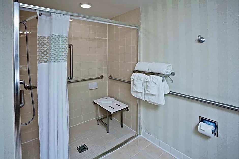 This mobility and hearing accessible, non-smoking room features one queen-sized bed and an accessible roll-in shower. The room also has a visual alarm and notification devices for the doorbell or door knock and incoming phone calls. The room features comfortable soft seating, a HDTV, and easy to operate alarm clock/radio. The free WiFi access will help you stay connected while on the road. If you prefer not to work at the desk, you can use the convenient lapdesk instead. You'll also enjoy the convenience of having a coffeemaker with tea service and iron/ironing board in your room. Any corresponding photo may not reflect the specific accessible room type or room feature.