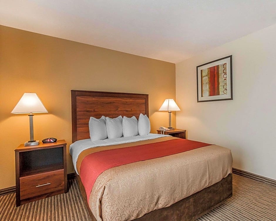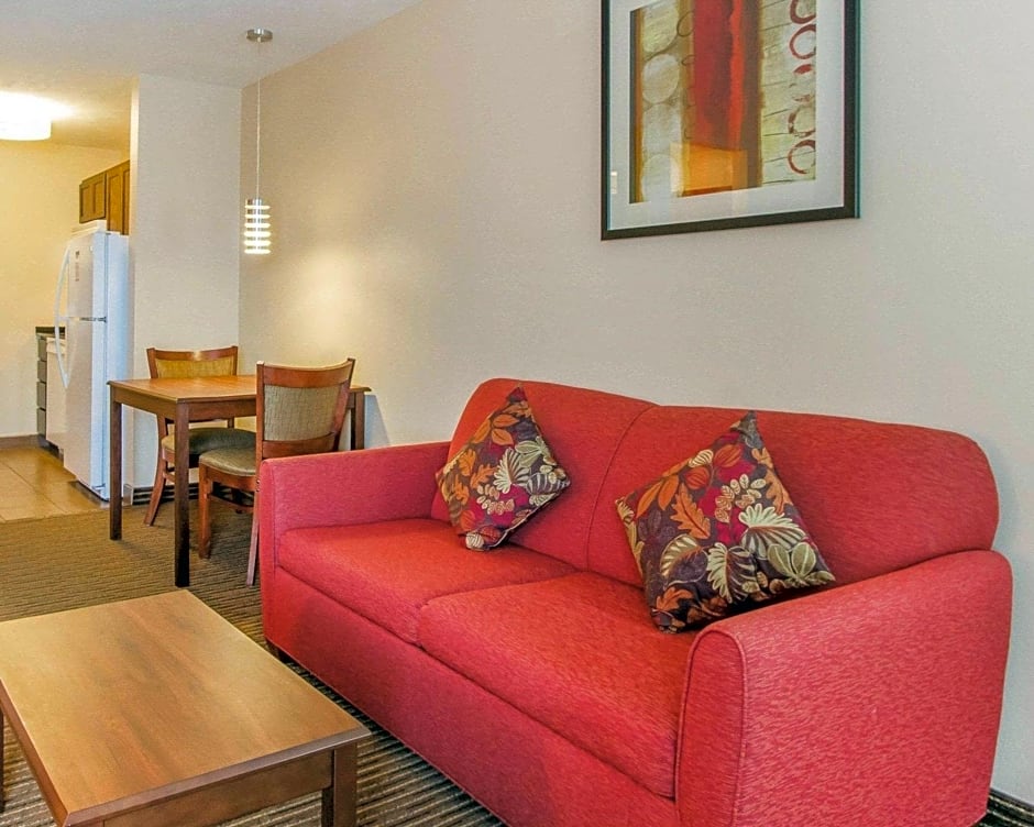 MainStay Suites Grand Island offers various types of rooms including King Suites with a sofa bed, One-Bedroom Queen Suites with a sofa bed, Suites with Two Queen Beds, Queen Suites, and King Suites. All of the rooms are non-smoking. The accommodations range from 2 adults and 1 child to 6 adults and 4 children. The bed sizes available are King, Queen, and Sofa Bed.